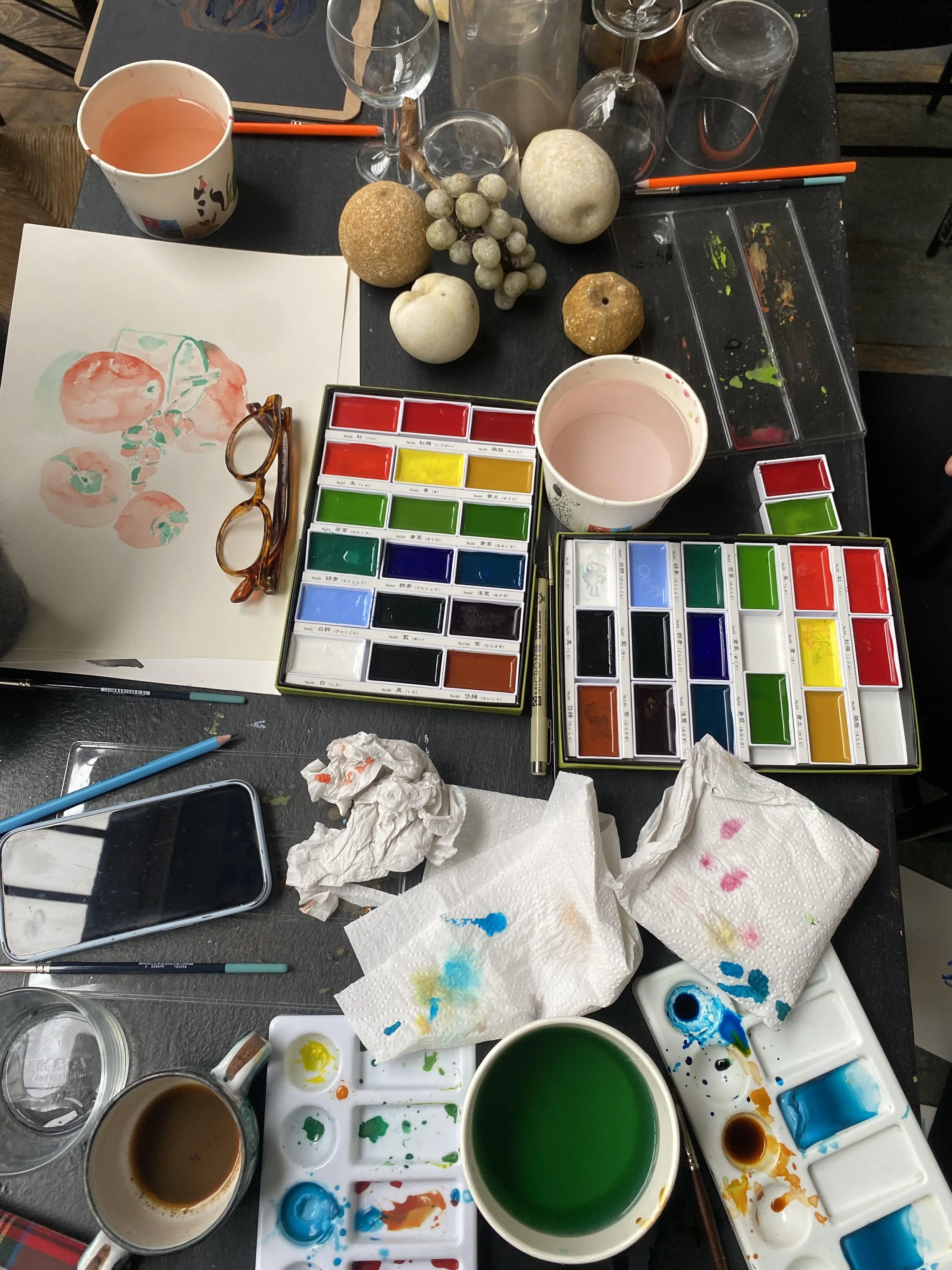 9:30AM French breakfast bonjour and recap of previous day’s lesson. Theory and color mixing in watercolor