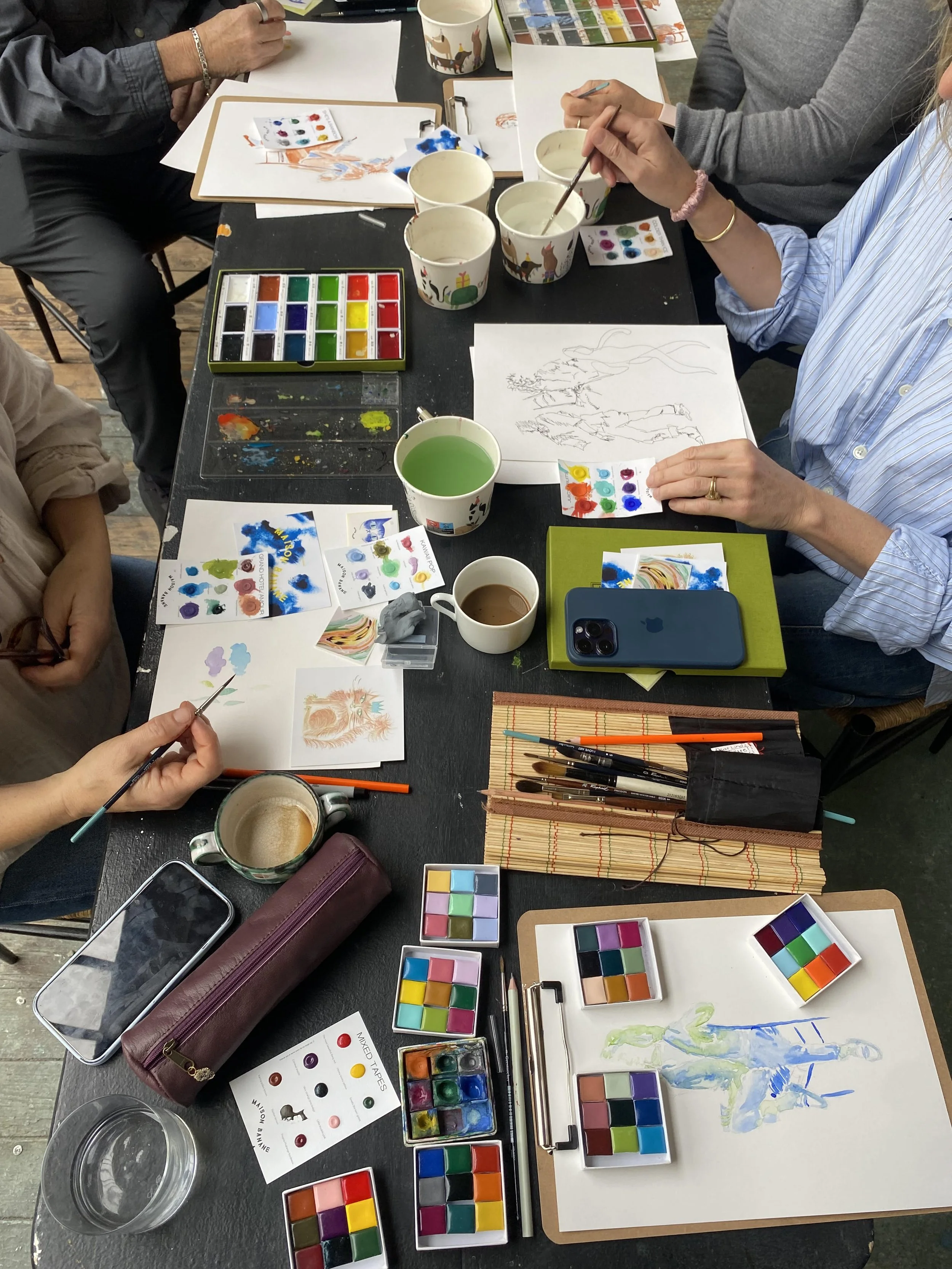 My teaching style is very much about facilitating learning while doing. I have taught private groups, art school students and international travelers drawing, illustration and watercolor since 2018. I like to meet students where they are with a generous approach to sharing life experiences and constructive encouragement. Why study watercolor in Paris if we can’t scour it for inspiration? I’ll also take you to some of my favorite places (galleries, museums, art stores, book stores) to fuel your creative process.