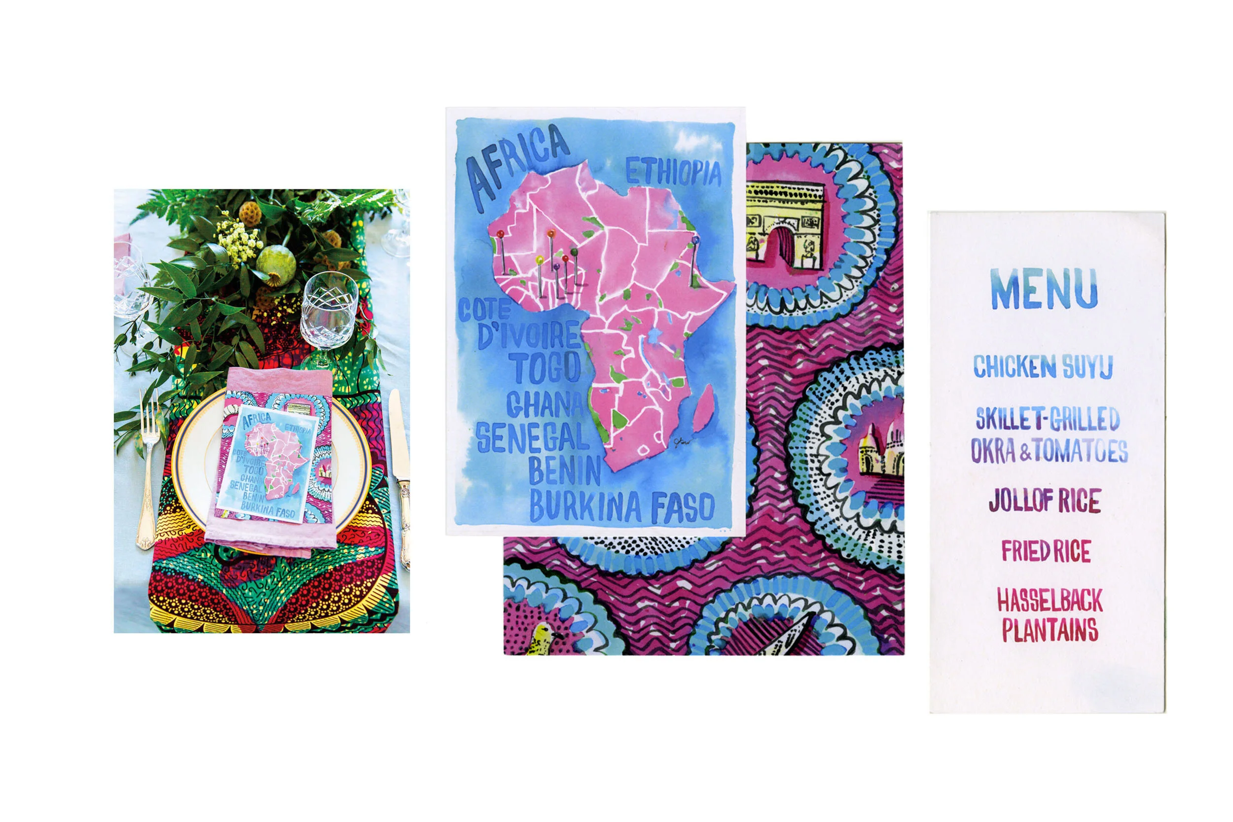 Watercolor hand lettering and calligraphy for the fashion and design worlds. Invitations featured in Vogue and Domino Magazine.
